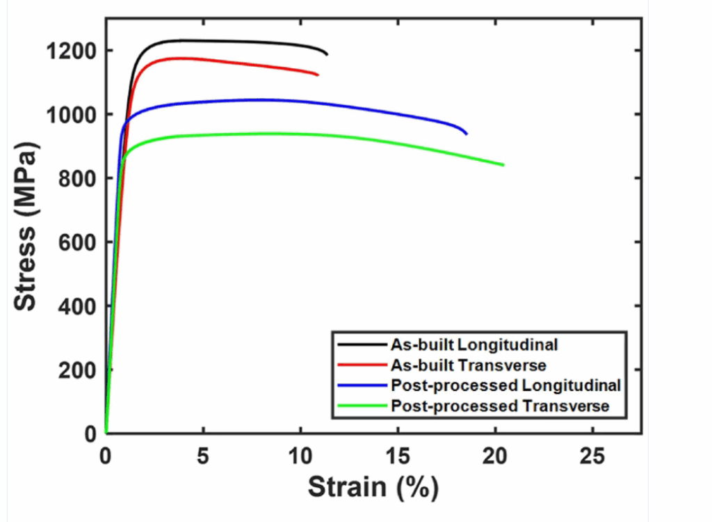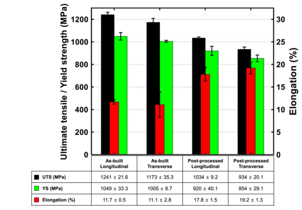 Fig. 1 Mechanical Property of Ti6Al4V printed parts in the state of As-built and Post-processed