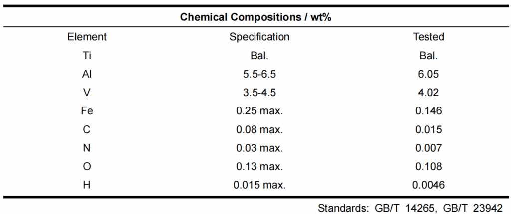 Chemical Composition of TRUER Ti-6Al-4V powder: