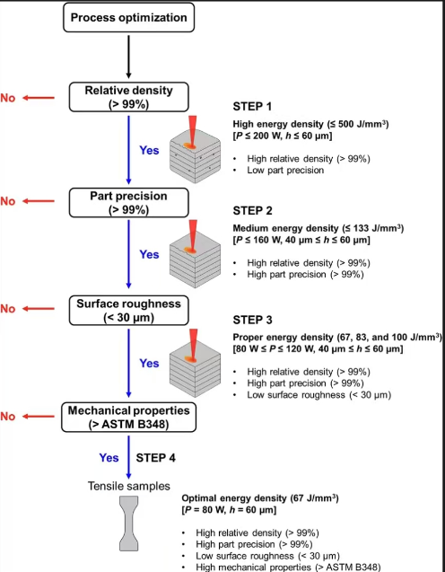 In previous Ti-6Al-4V printed parts, it cannot achieve UTS and ε values exceeding the ASTM B348 standard. This is primarily because previous research has focused predominantly on maximizing relative density while paying relatively less attention to minimizing surface defects, including coarse surface topography and subsurface defects such as shallow pits and notches.