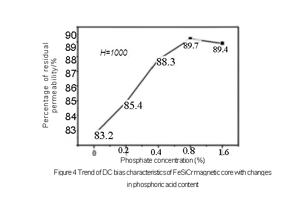 Figure 4 shows the trend of the DC bias characteristics of the FeSiAl magnetic core as the phosphoric acid content changes.