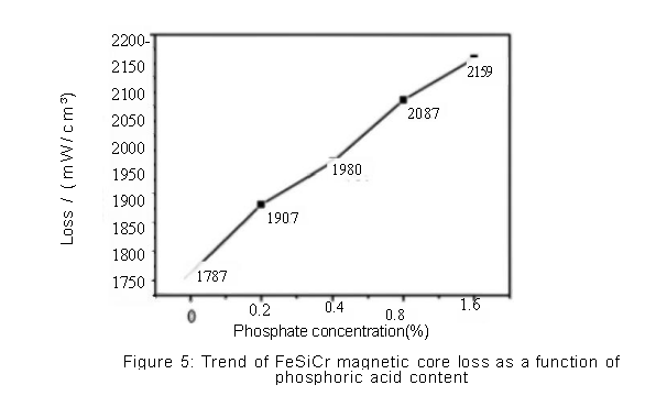 Figure 5 shows the trend of the loss characteristics of the FeSiAl magnetic core as the phosphoric acid content changes.
